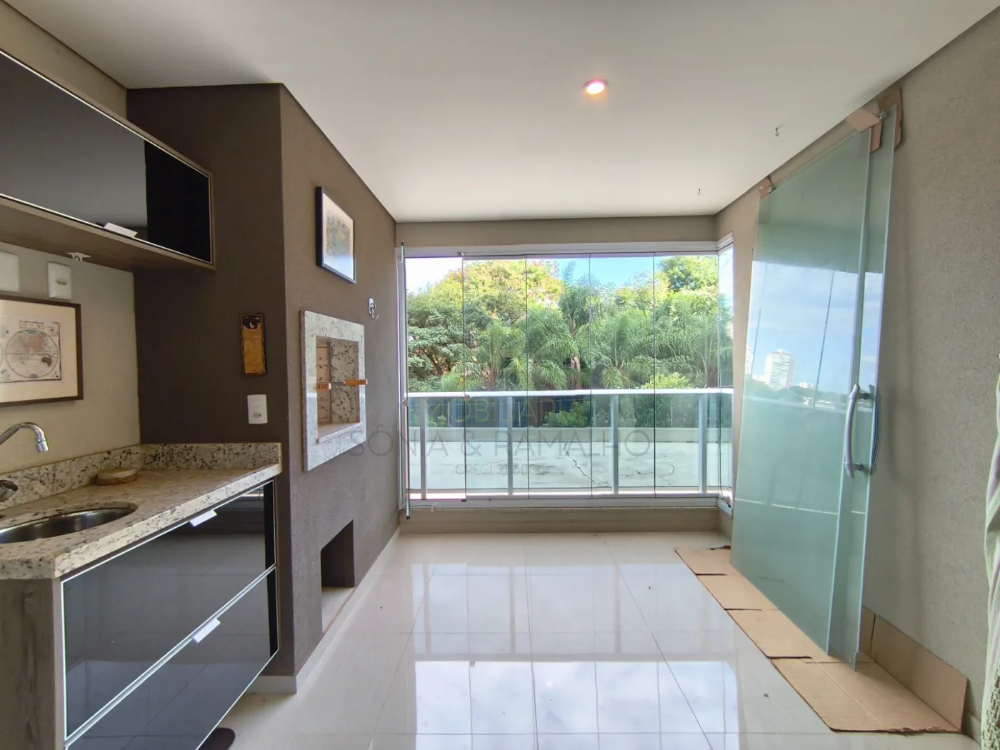 - Sacada Gourmet com fechamento em vidro, ideal para refeições ao ar livre e momentos de descontração
