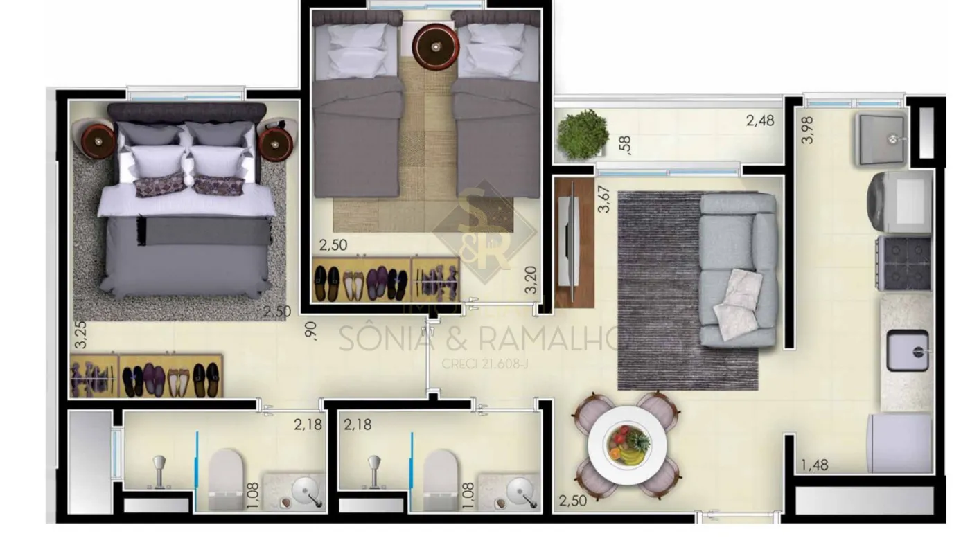 - 02 Dormitórios, sendo 1 suíte