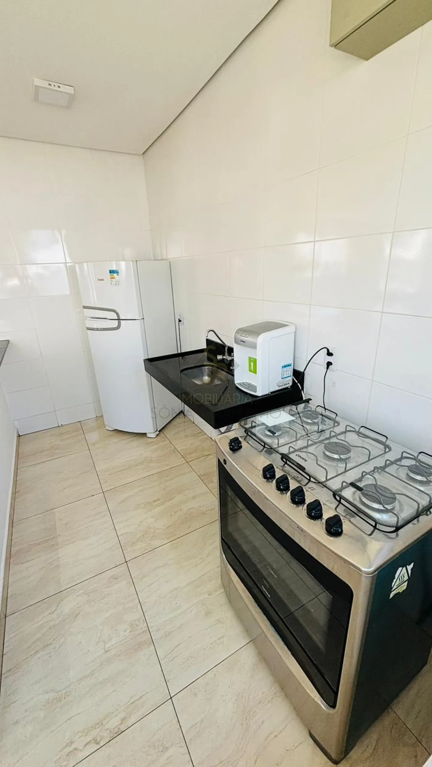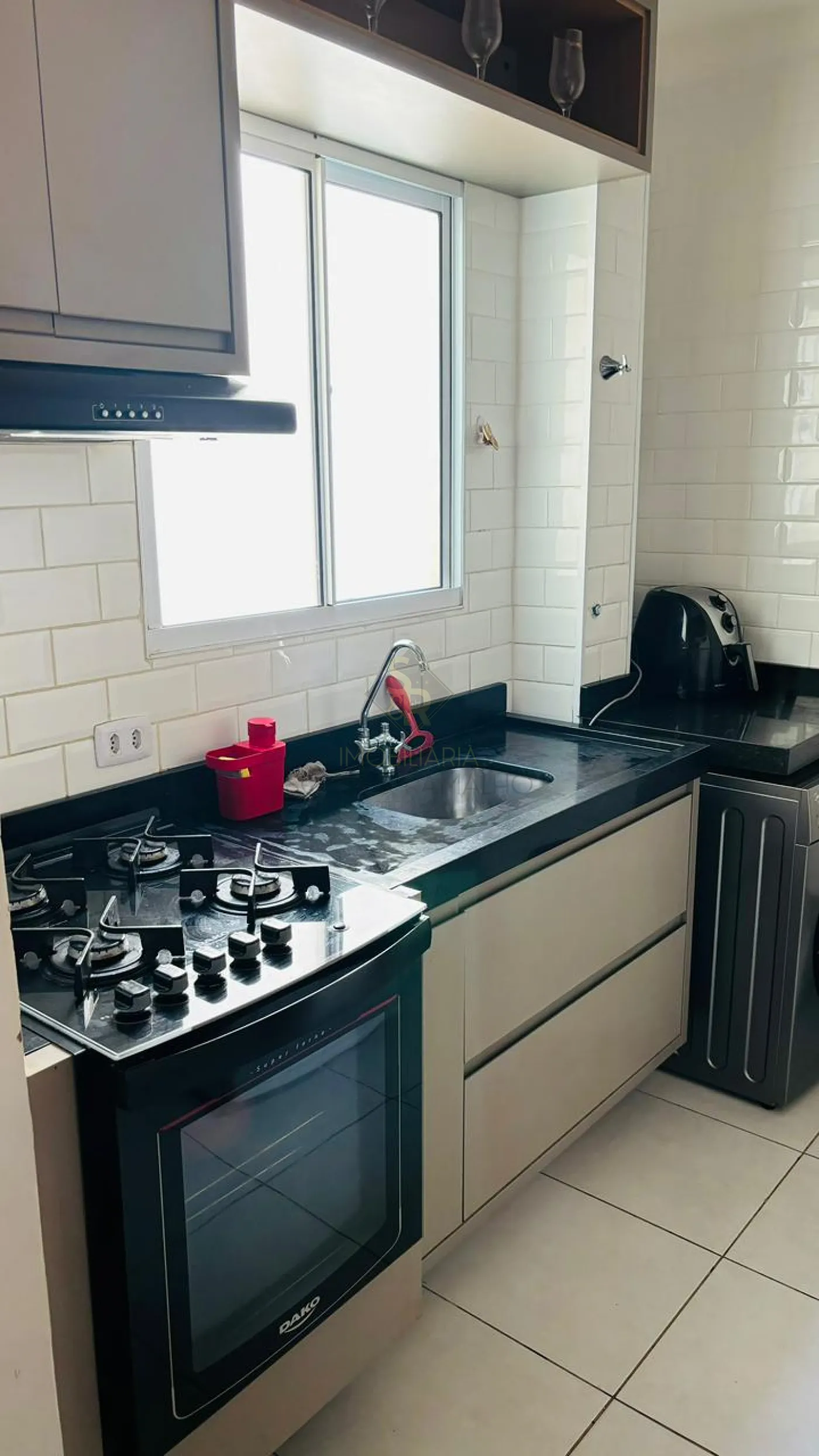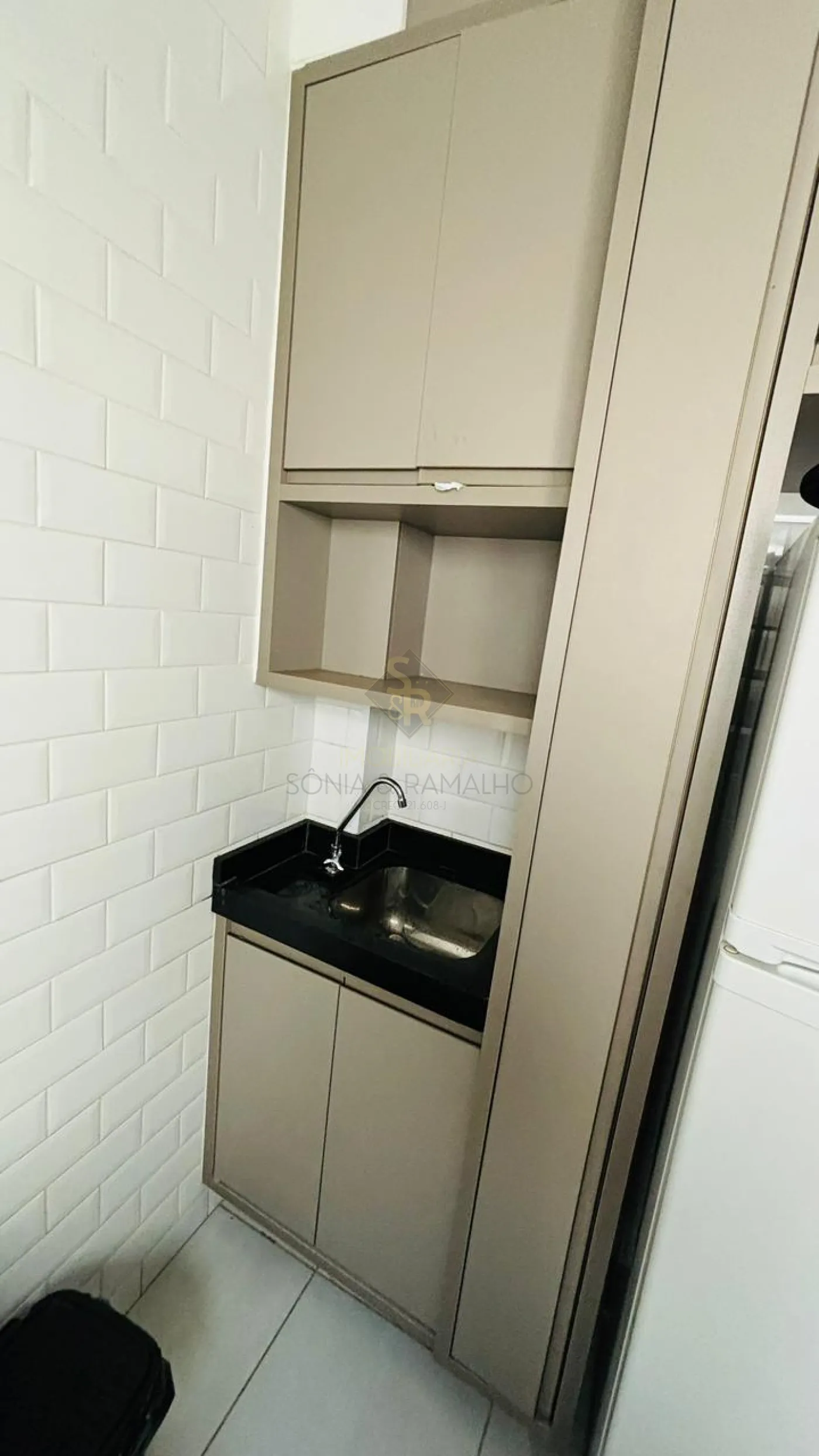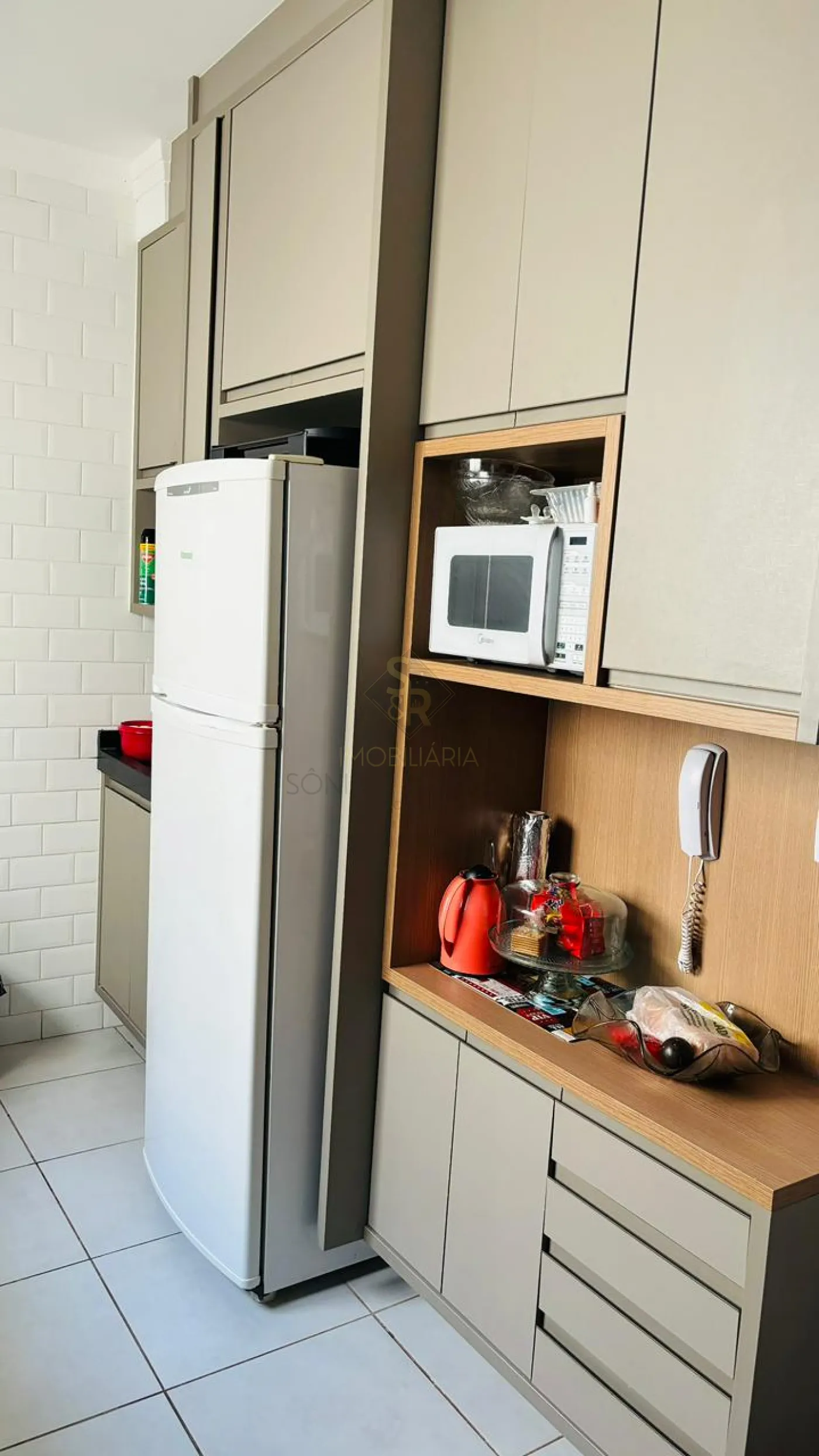 - Cozinha com revestimento tipo lajota branca até o teto
