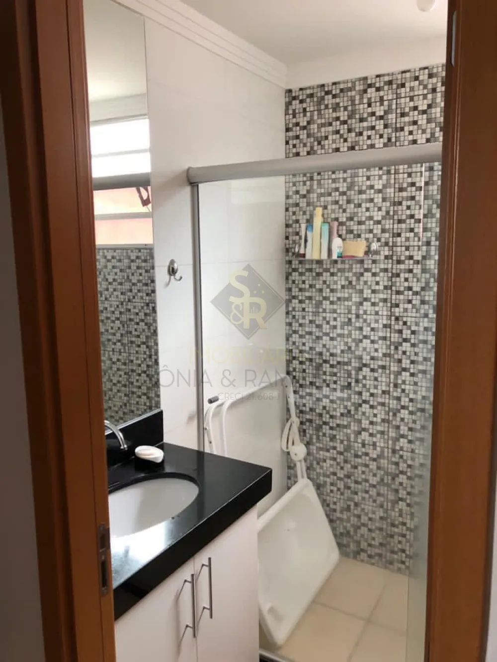 - 1 banheiro social completo, blindex, gabinete, espelho