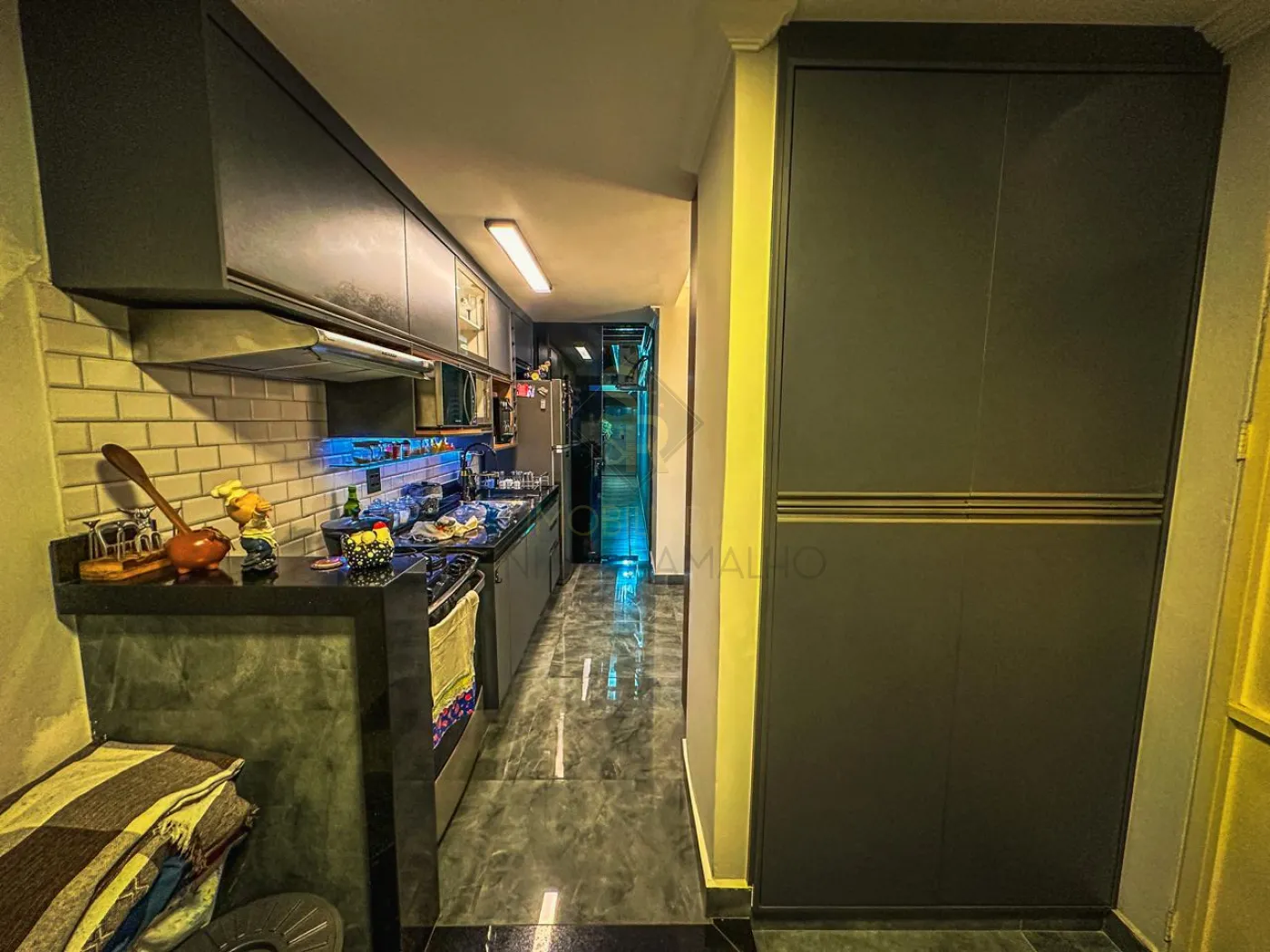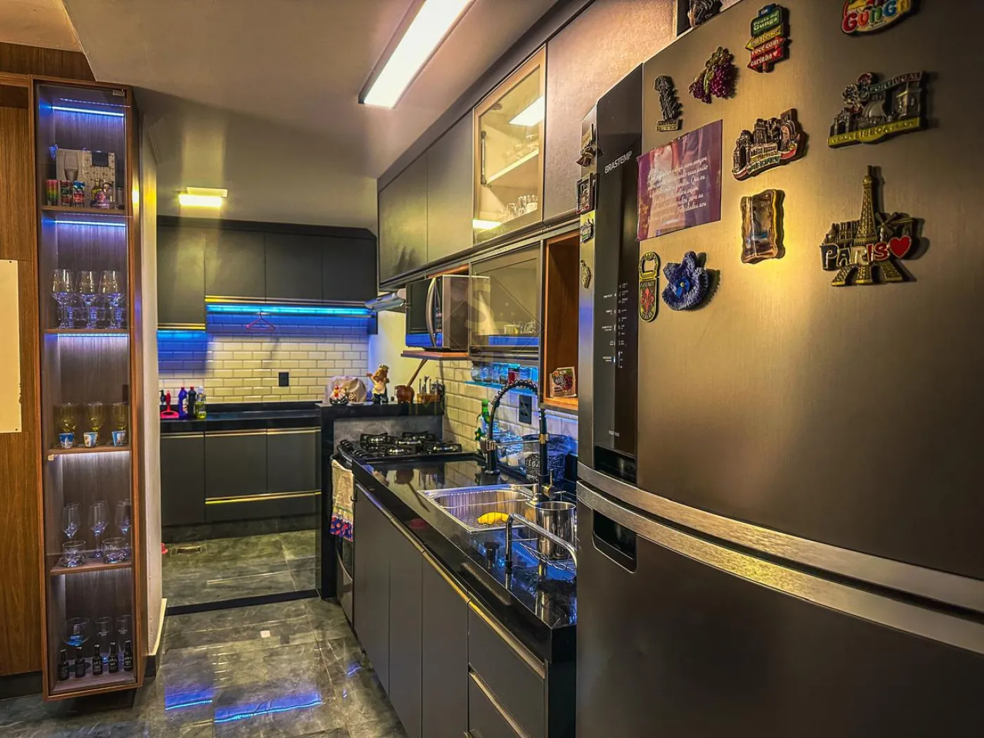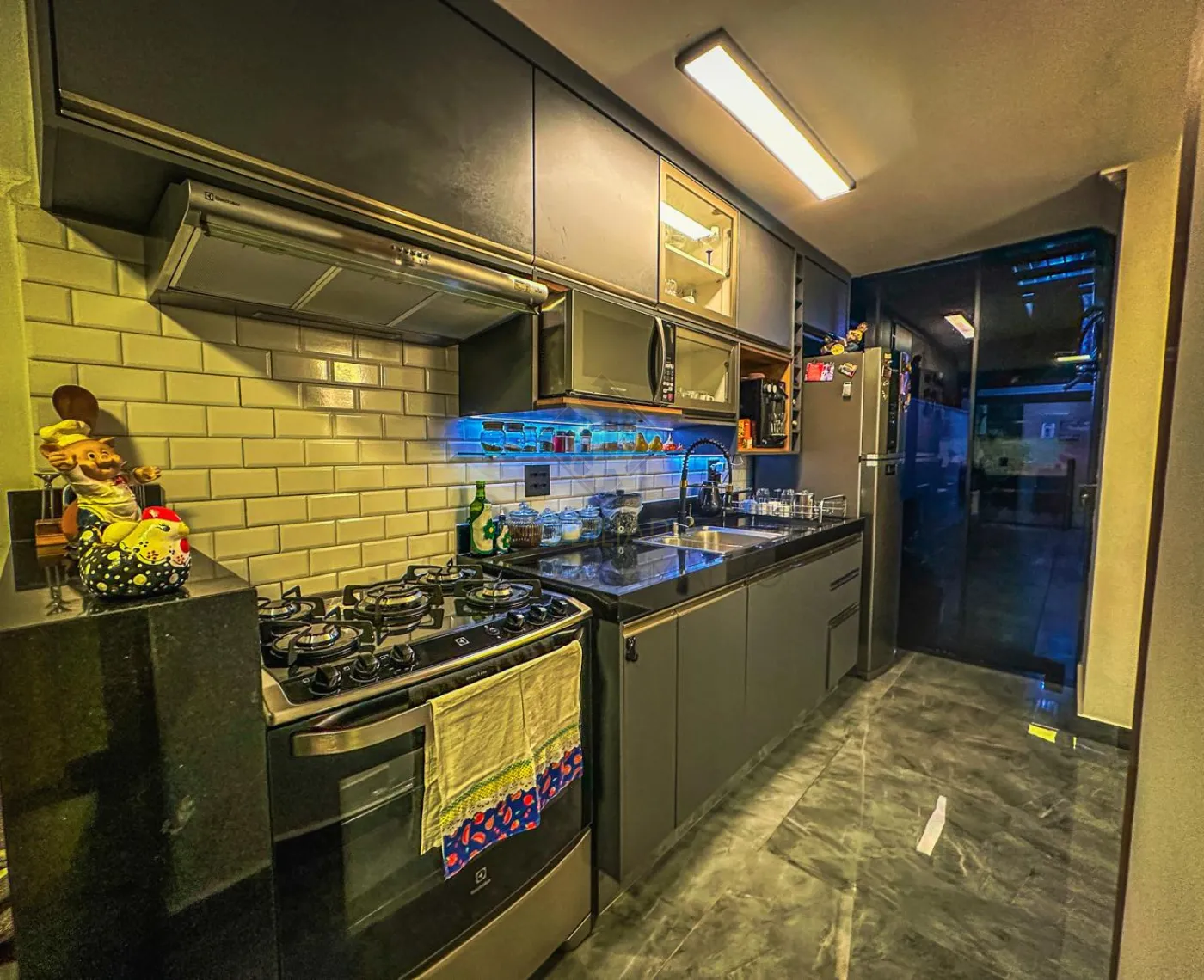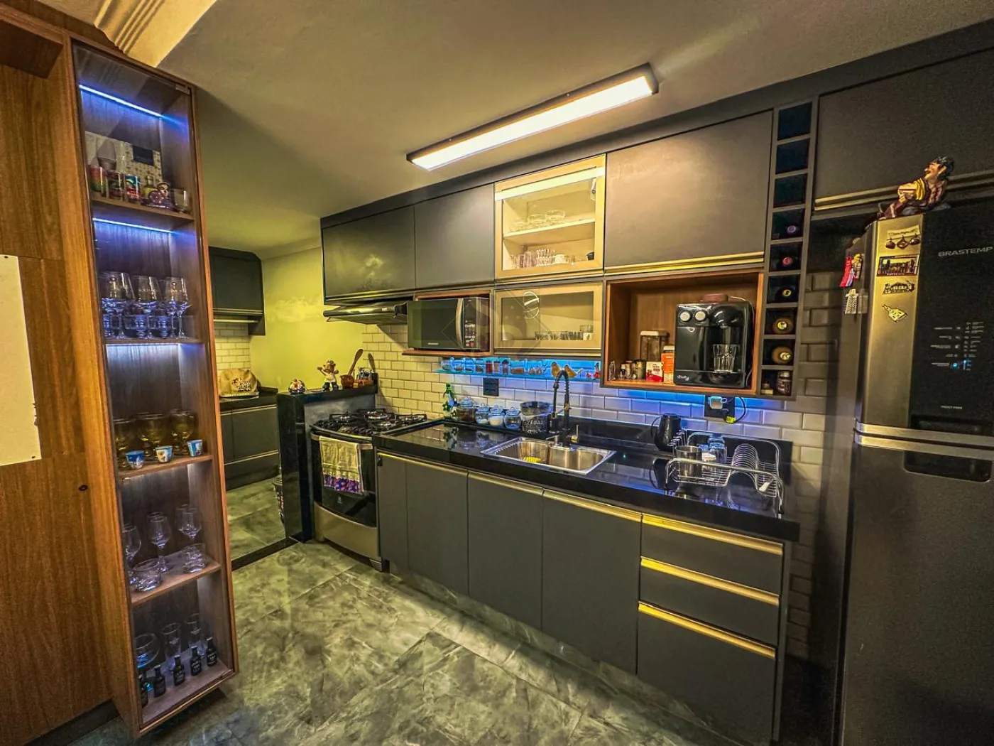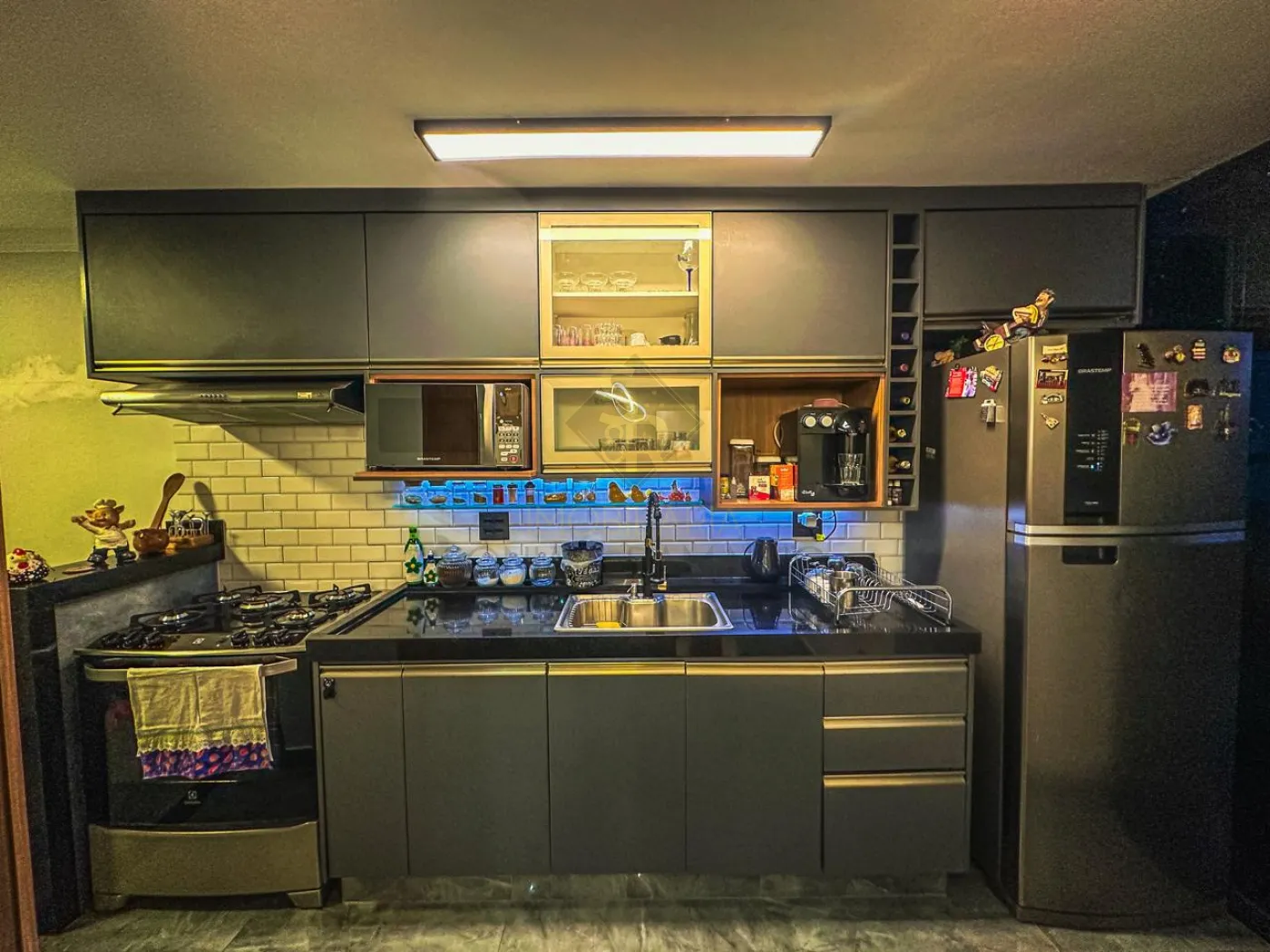 - Cozinha toda planejada com iluminação em LED no armário.