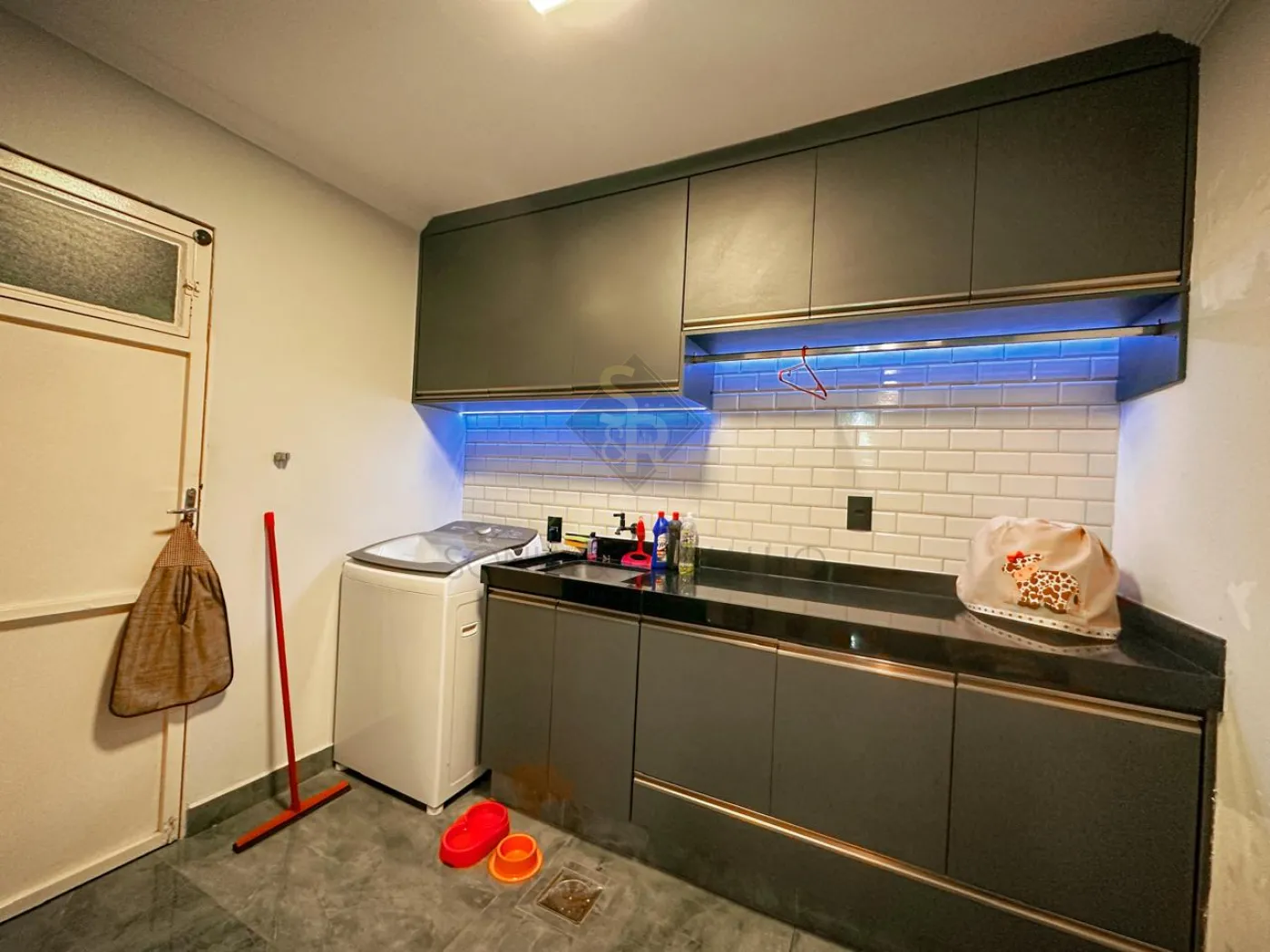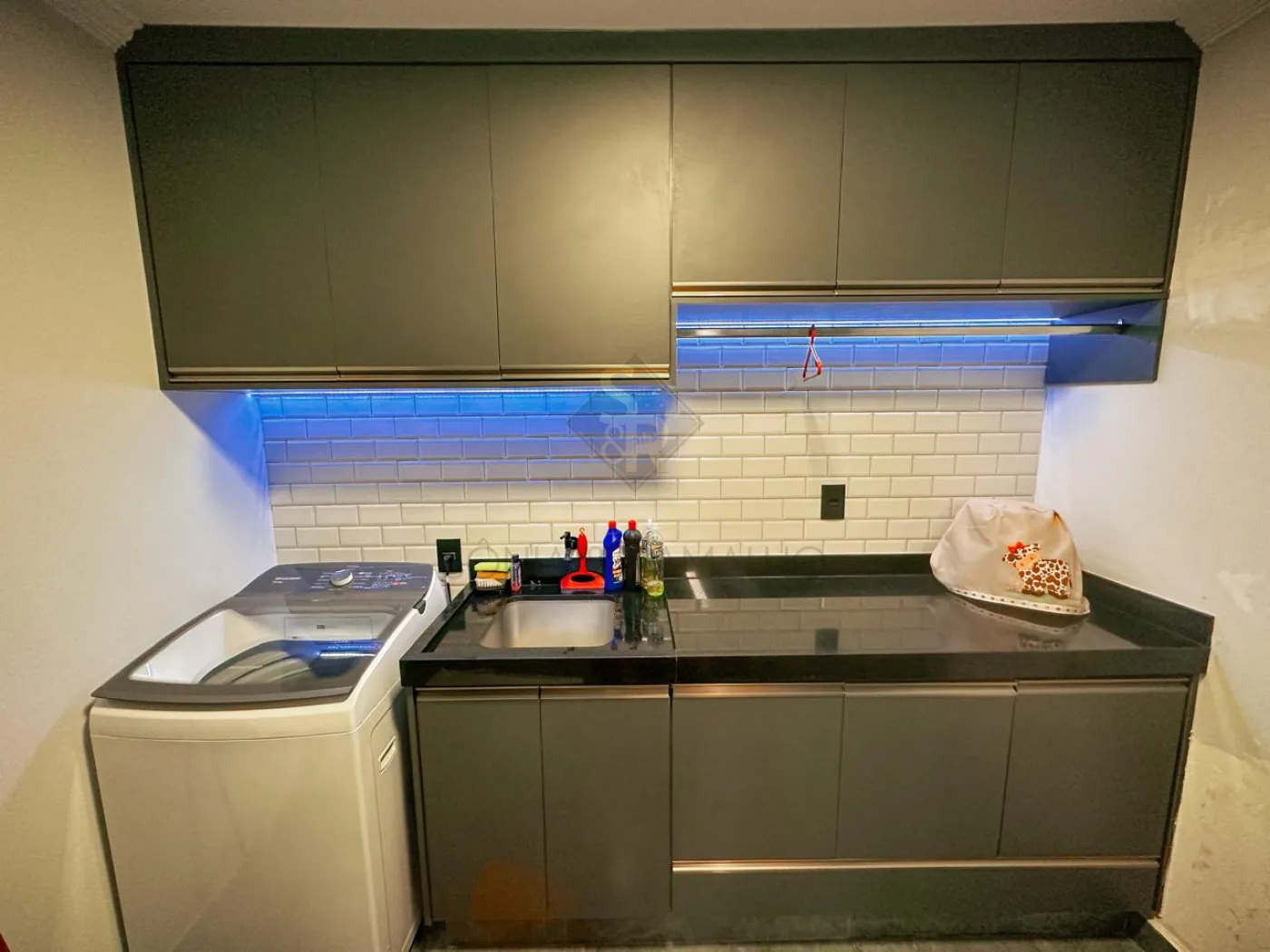 - Área de serviço planejada com iluminação em LED no armário.