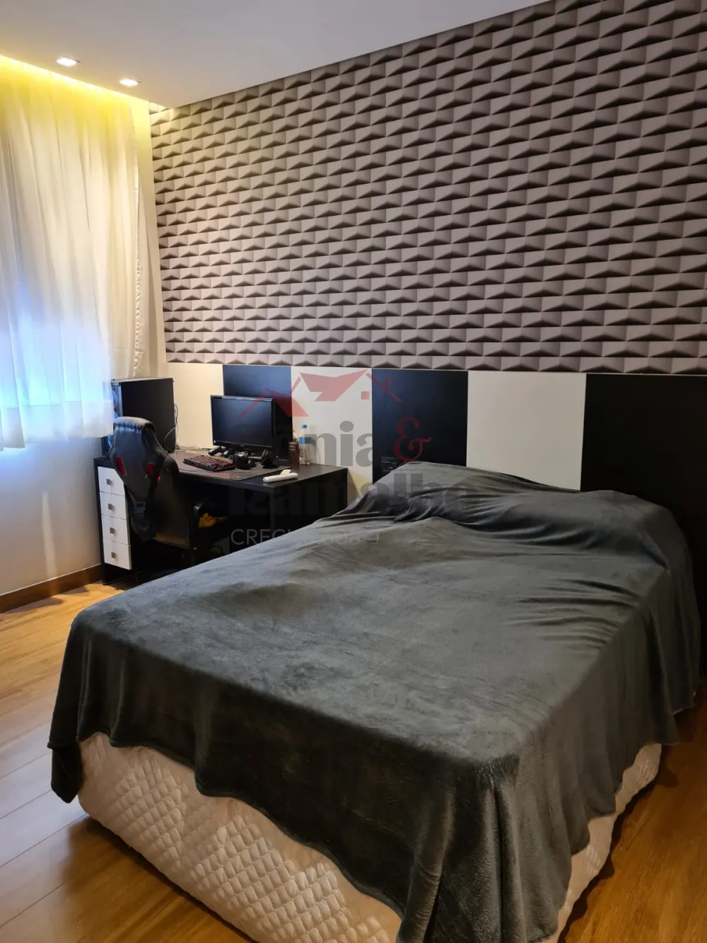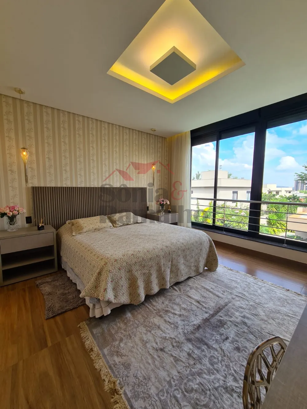 Imagine os benefícios de investir e/ou morar num imóvel que possui 04 suítes amplas, sendo 3 suítes no pavimento superior, sendo 1 com closet e jacuzzi e no pavimento inferior 1 suíte reversível, pavimento inferior reversível para escritório, suíte ou home cinema, sala 3 ambientes com pé direito alto e 1 sala intima no pavimento superior, ampla cozinha, depósito, ampla área gourmet com chopeira, piscina iluminada e aquecida, ducha e vestiário, paisagismo completo, aparelho de ar-condicionado, e 4 vagas de garagem, sendo 2 cobertas.
