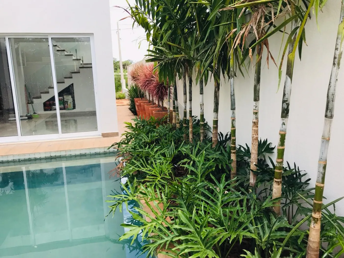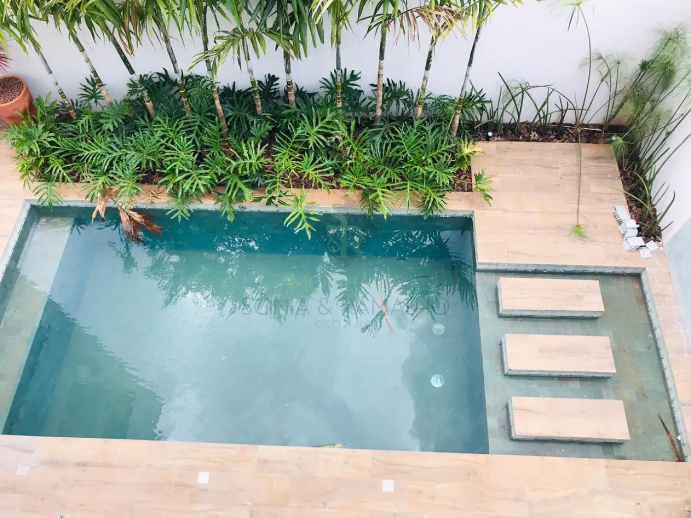 - Piscina com pedra vulcânica Hijau (muda de cor ao molhar)
