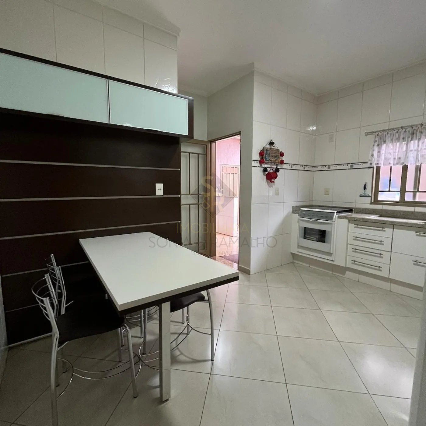 - Cozinha com planejados, fogão embutido e despensa ampla.