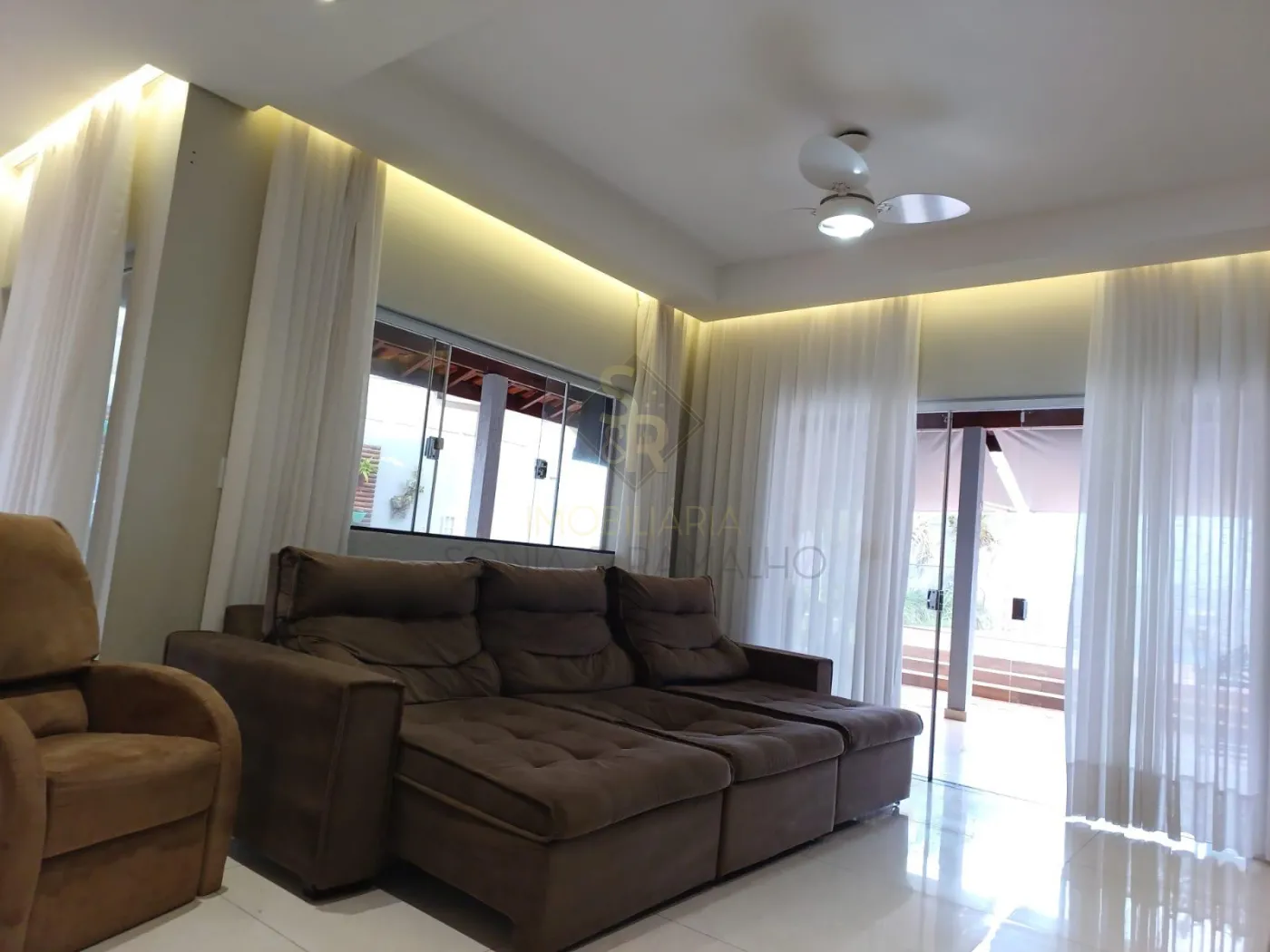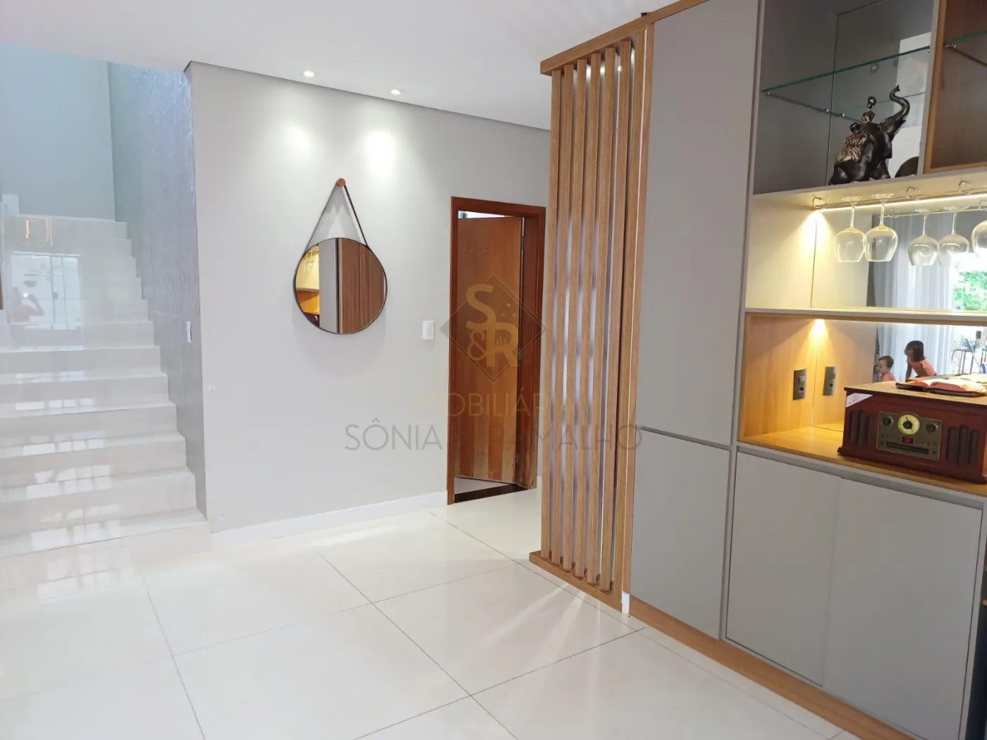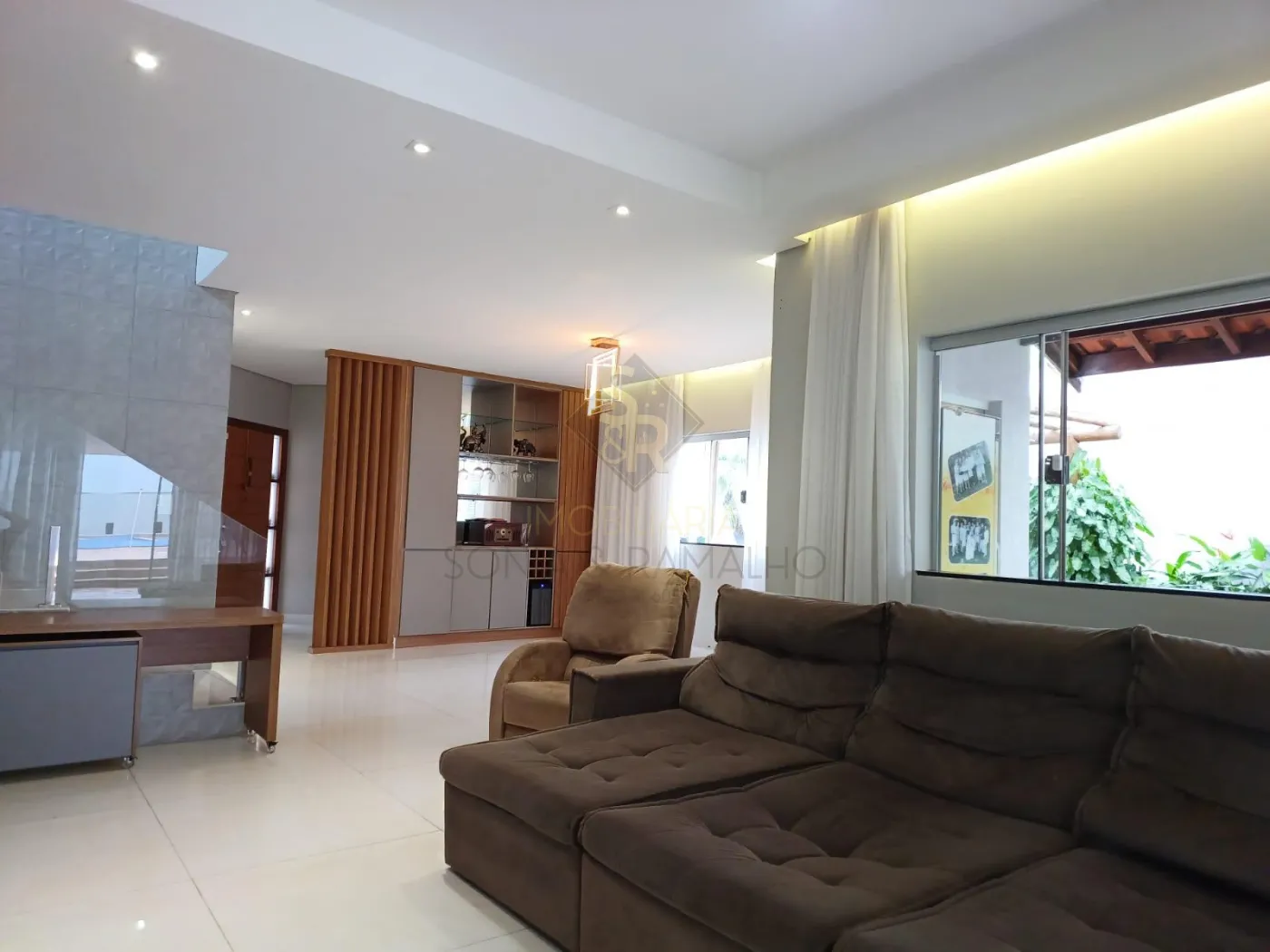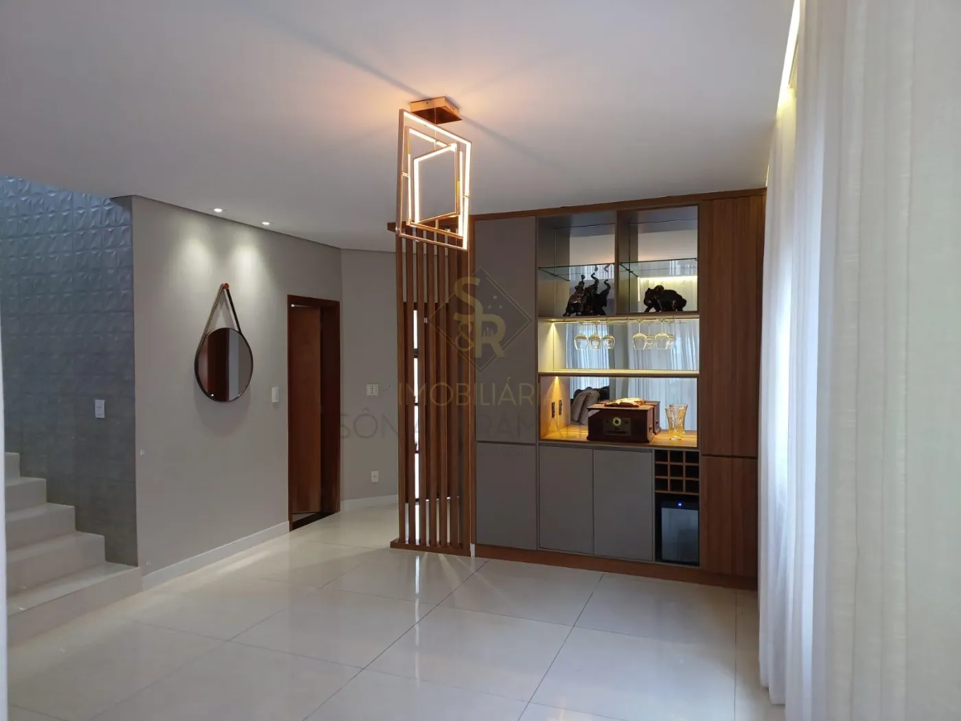 - Sala de Jantar ampla e bem iluminada com iluminação embutida nos gessos, armário planejado para adega e bar, cortinas embutidas;