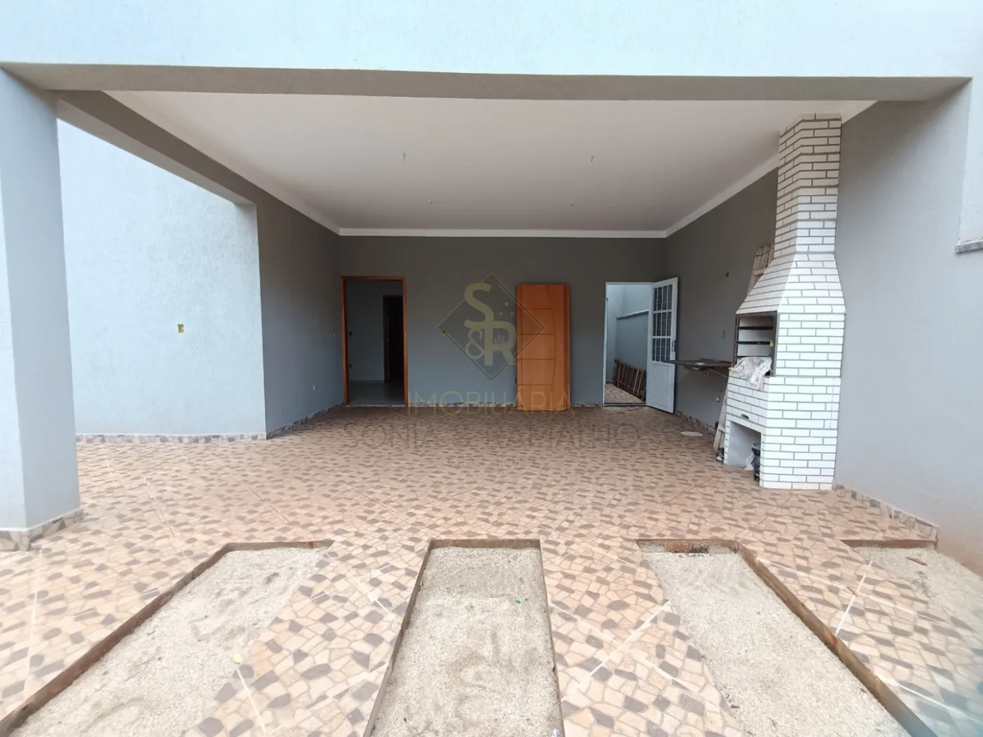 Churrasqueira e pia na garagem.